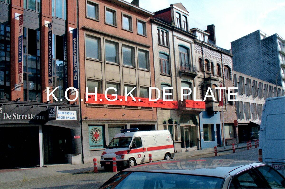 Formaat : 10 x 15 cm. - Hun ziekenwagen staat voor de deur. Links van het gebouw de kantoren van De Streekkrant