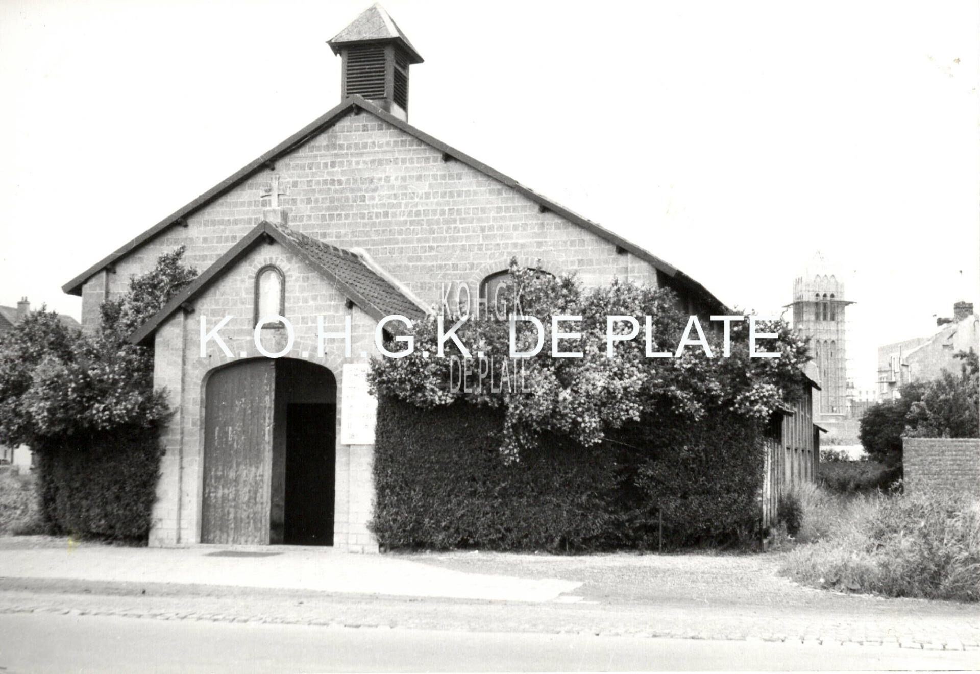 Fotrmaat : 12 x 17 cm. - Sint Raphaëlkerk Mariakerke. Het was een noodkerk gebouwd in 1919 en in gebruik genomen in maart 1920. De kerk was in gebruik tot juni 1959.