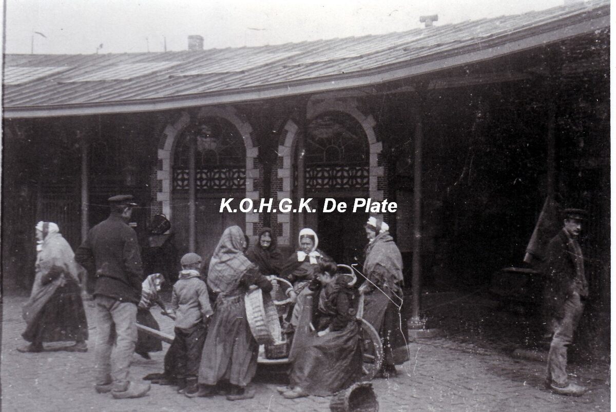 Formaat : 15 x 10 cm. - Binnenzicht van de oude vismijn, bijgenaamd "De Cirk"