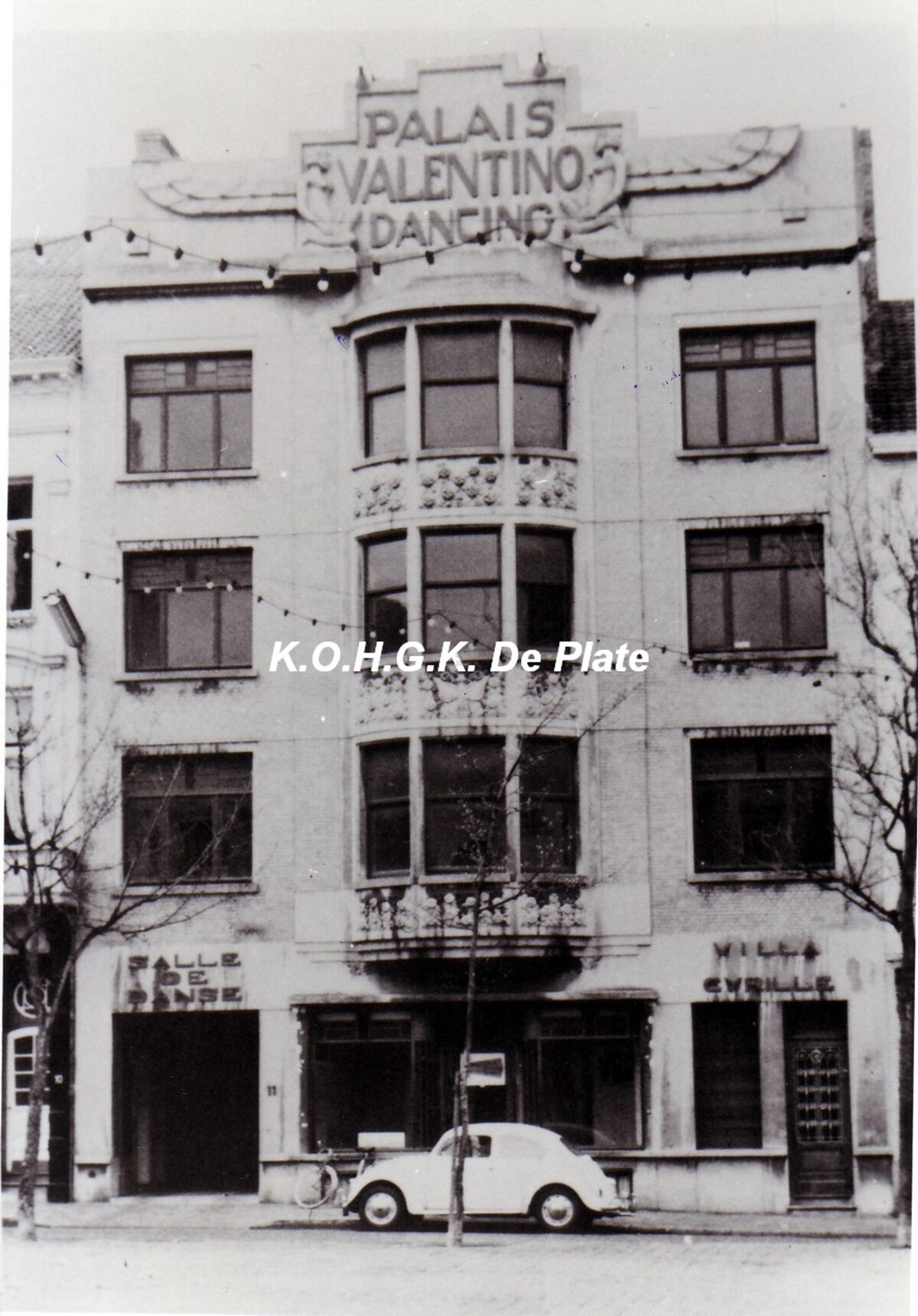 Formaat : 10 x 15 cm.. Met gevelopschriften, links : salle de danse en rechts : villa cyrille. - "De Valentino behoort tot de alleroudste danszalen van de stad en was de eerste inrichting te Oostende met elektrische verlinchting. Er waren drie toegangen : twee gaven uit op de Groentemakrt en één in de Sint-Franciscusstraat. In 1960 sloot deze eertijds zo bloeiende zaak definitief haar deuren" (Yvonne Vyncke).