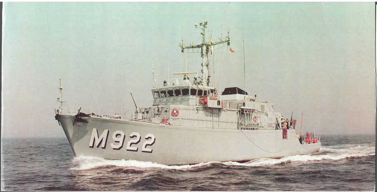Formaat : 11 x 21 cm. - Gebouwd door de tijdelijke vereniging "Marcantile-Béliard" NV Oostende - Rupelmonde in de periode 1987 - 1989. De romp vervaardigd uit GRP (Glass Reinforced Plastic) te Plassendale en verdere afwerking te Rupelmonde.