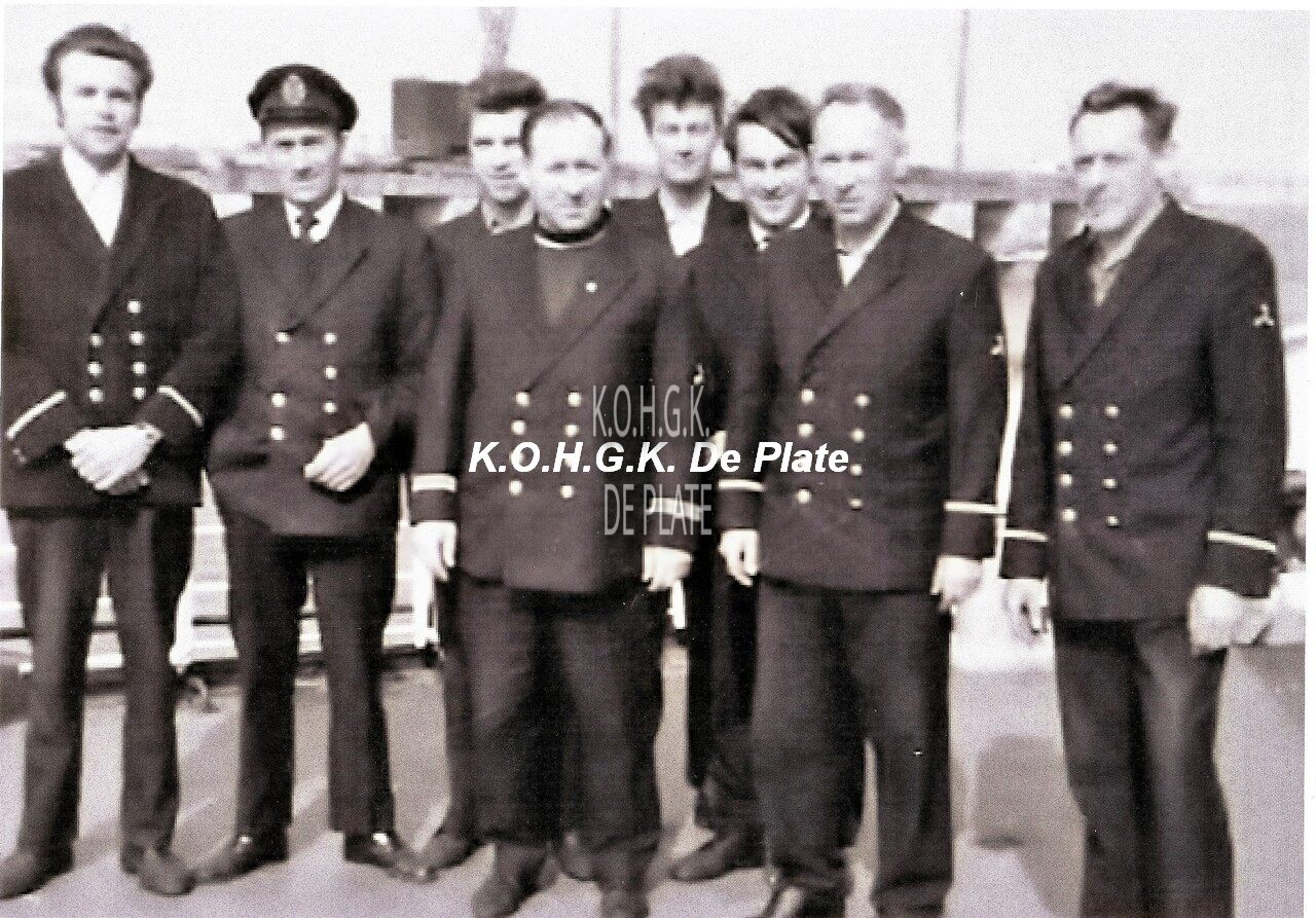 Afdruk, formaat : 29.5 x 21 cm. - Tweede van links, Corneau Albert, bootsman.