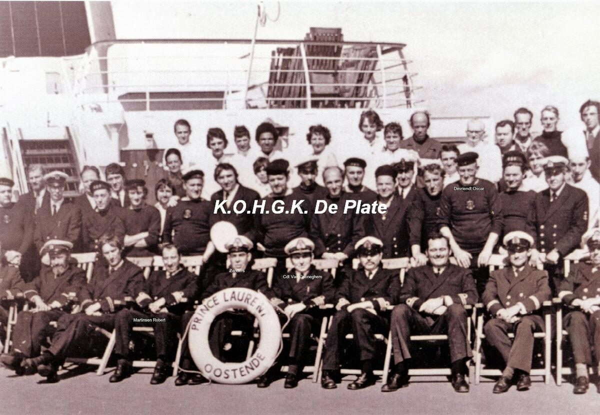 Afdruk, formaat : 29.5 x 21 cm. - De bemanning van de carferry "Prince Laurent" met commandant, Jan Van Caenegem