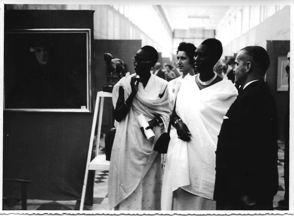 Formaat : 13 x 17 cm. - Burgemeester Adolphe Van Glabbeke in gezelschap van de vrouw van de Mwami van Burundi. - Foto Jean, Graaf de Smet de Naeyerlaan 18, Oostende. - Map 006 A-109g