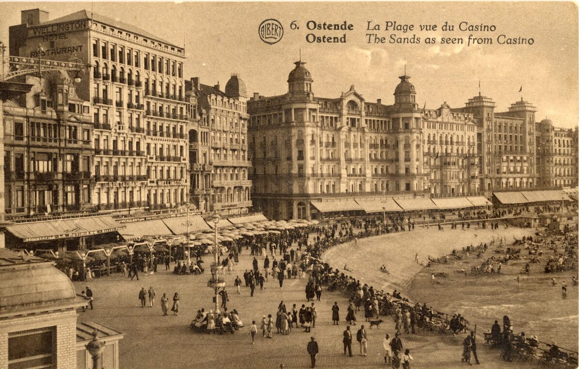 Zicht op de Hotels langs de zeedijk en rechts het Groot Strand