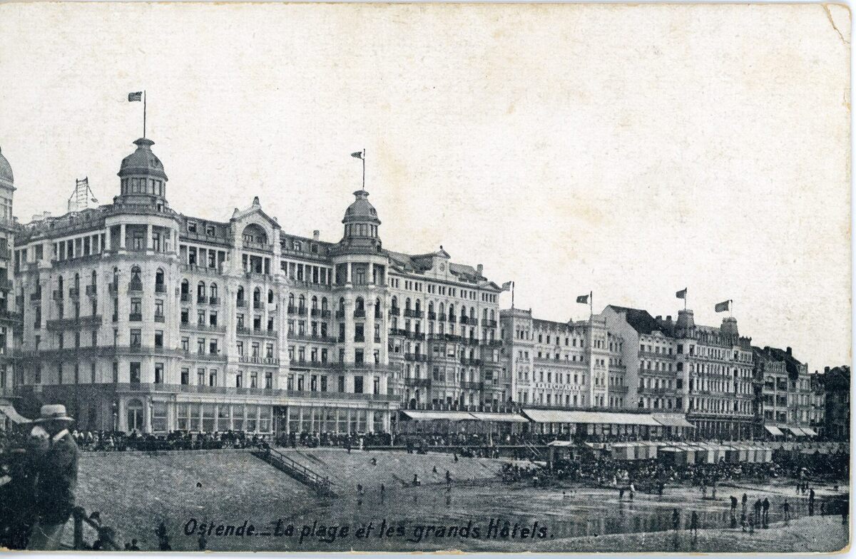 De Zeedijk gezien vanaf het Kursaal richting het Koninklijk Chalet. Het grote hotel op de hoek met de Berlijnstraat is Hotel Continental. De Berlijnstraat werd omstreeks 1919 gewijzigd in IJzerstraat, ter herdenking aan de Slag van de IJzer.