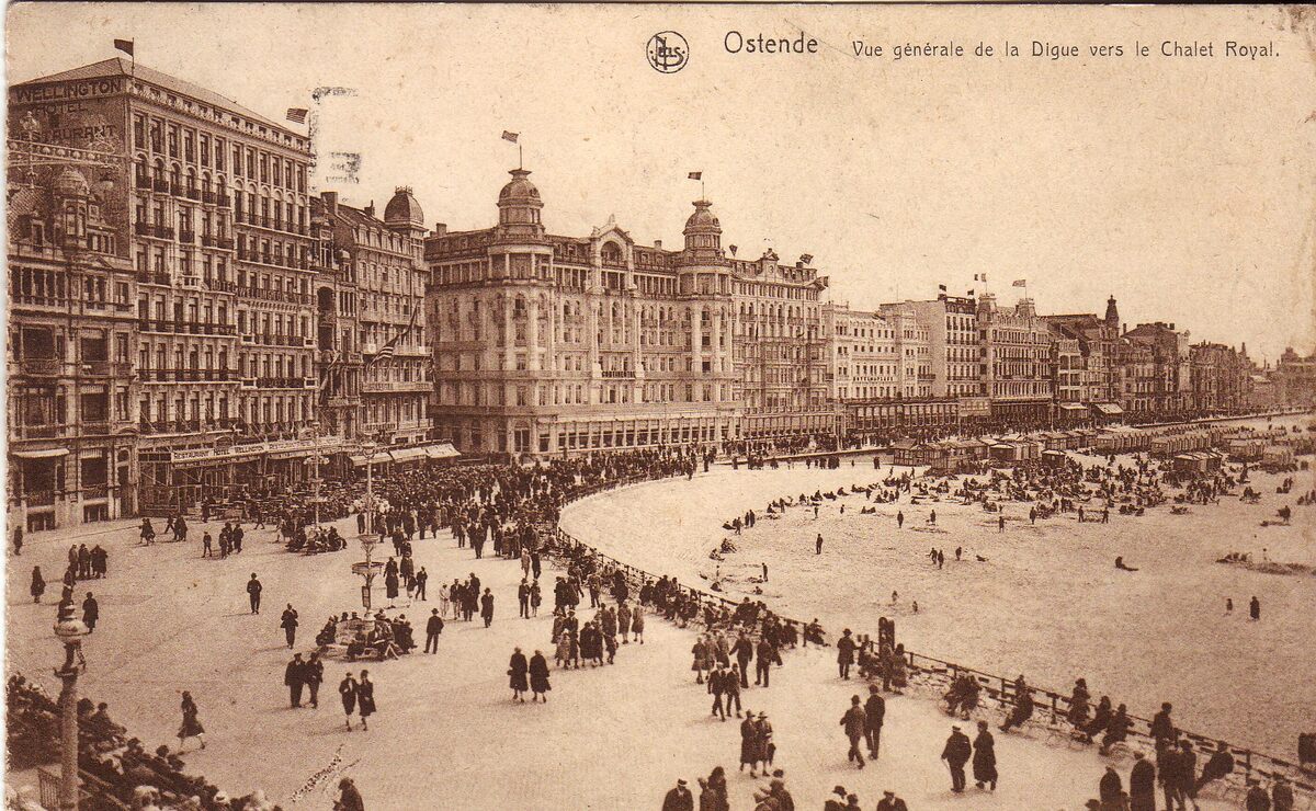 De grote hotels langs de Zeedijk gezien vanaf het kursaal richting het Koninklijk Chalet.