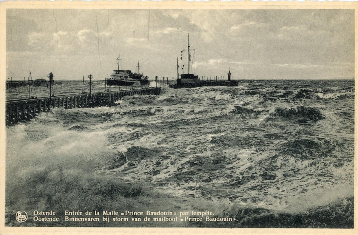 Nels, Thill 16. - Ostende - Entrée de la Malle Prince Baudouin par tempête. Oostende - Binnenvaren bij storm van de mailboot Prince Baudouin. - in de achtergrond in het midden, het Ooststaketsel met tijseinpost.