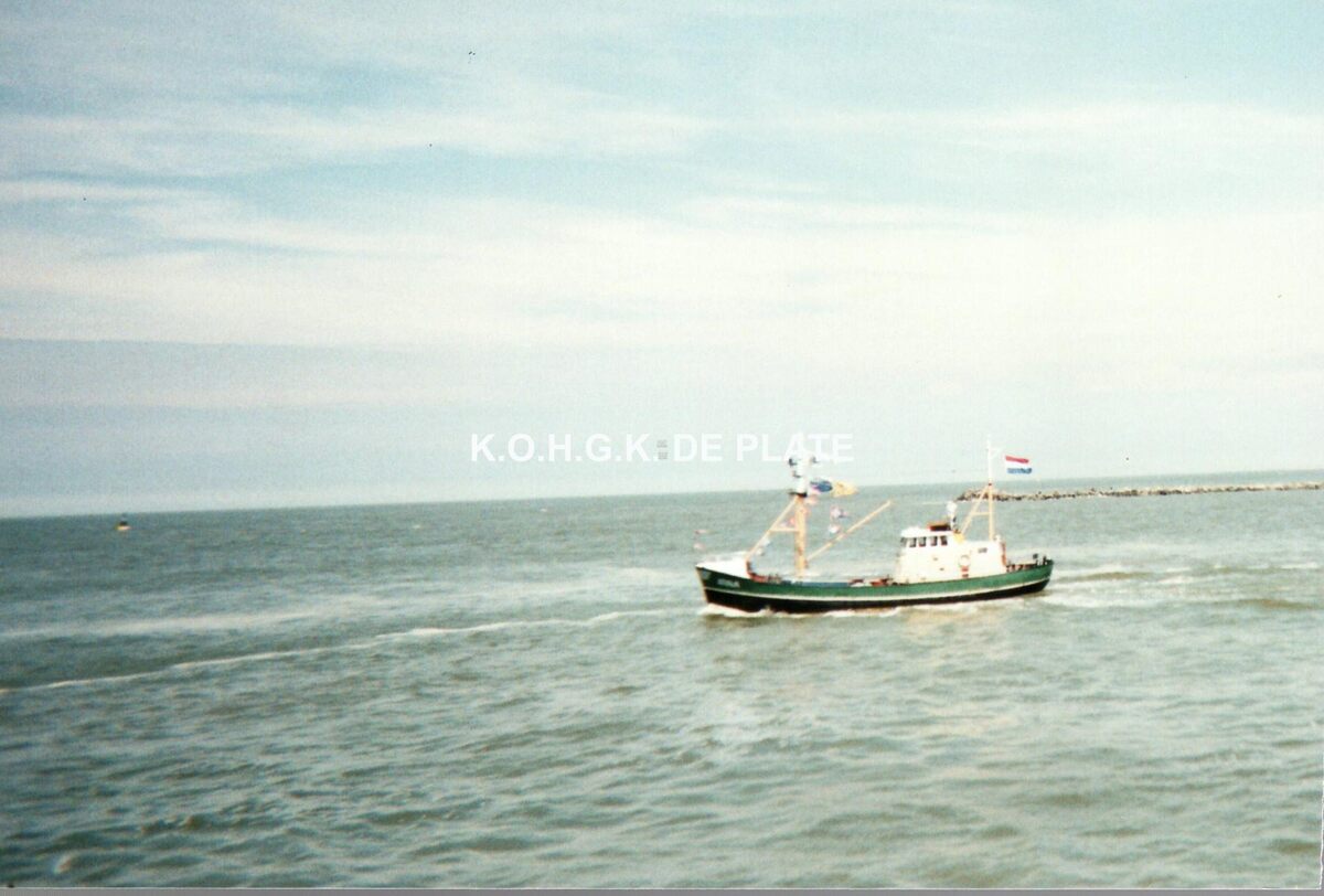 Formaat : 10 x 15 cm. - Nederlands vissersvaartuig verlaat de haven van Oostende