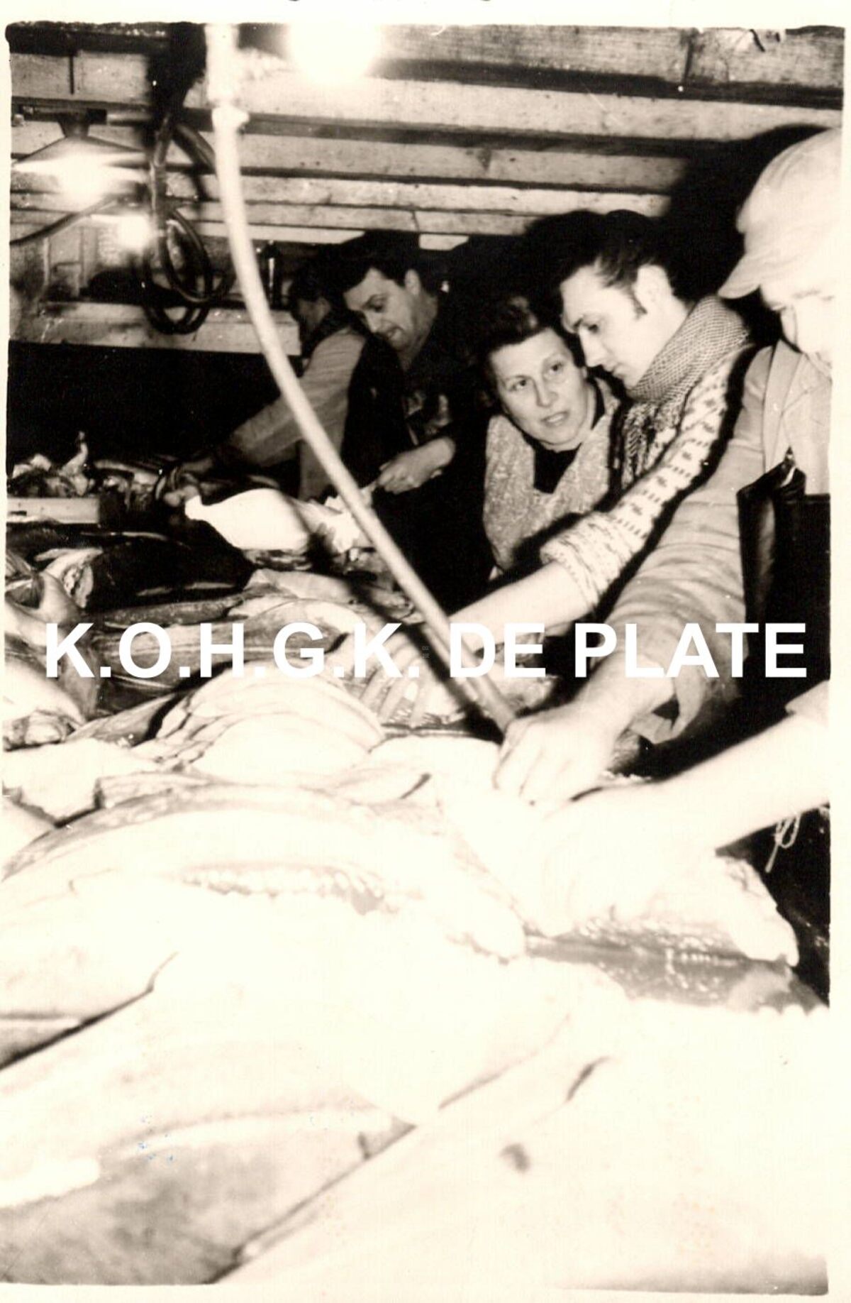 Formaat : 12 x 8,5 cm. - Visverwerking. De vis wordt verwerkt in een pakhuis in de vismijn.