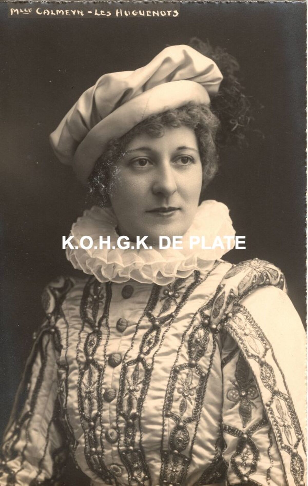 Formaat : 13,5 x 9 cm. - Olga Calmeyn in de rol van page in de opera "Les Huguenots" van Giacomo Meyerbeer opgevoerd in de "Koninklijke Franse Schouwburg" te Antwerpen