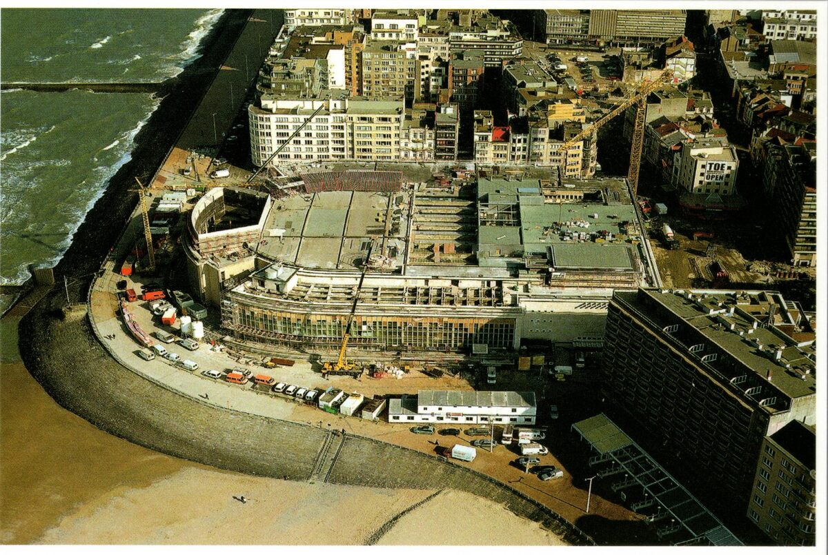 Tropic T 500. - Kursaal Oostende. - Luchtfoto tijdens de renovatiewerken. We zien het dak en de westgevel gelegen langs de Albert I-promenade.