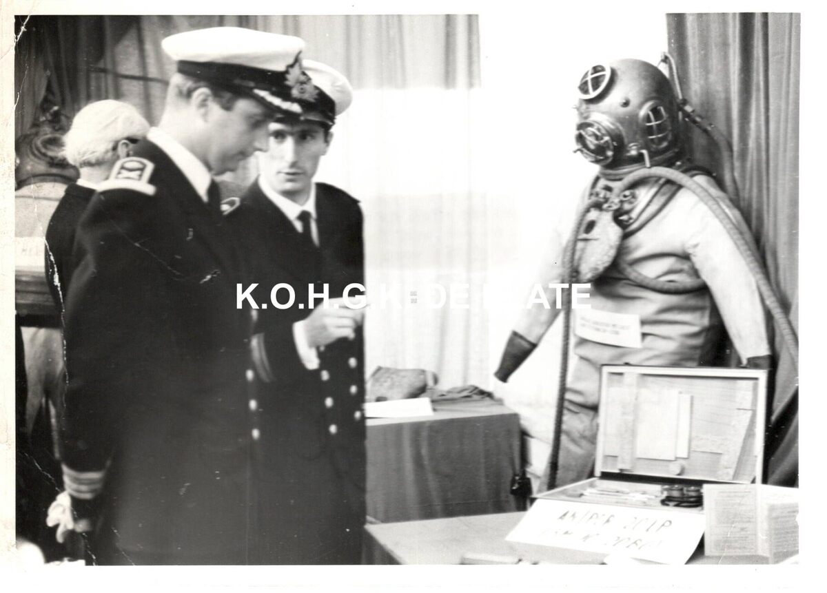 Formaat : 13 x 18 cm. - De prins brengt een bezoek aan de tentoonstelling van de Zeemacht op de Dag van de Zeemacht. Hij krijgt uitleg van vaandrig-ter-zee Desitter (tekst onder voorbehoud).