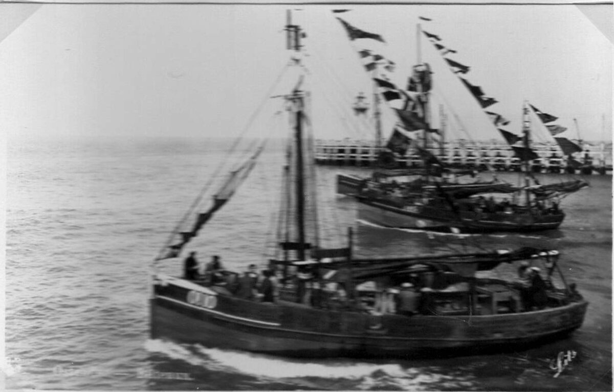 Real Photo. - Bevlagd en met de familie aan boord, hoogstwaarschijnlijk om deel te nemen aan de Zeewijding. - Map 023 D-133a