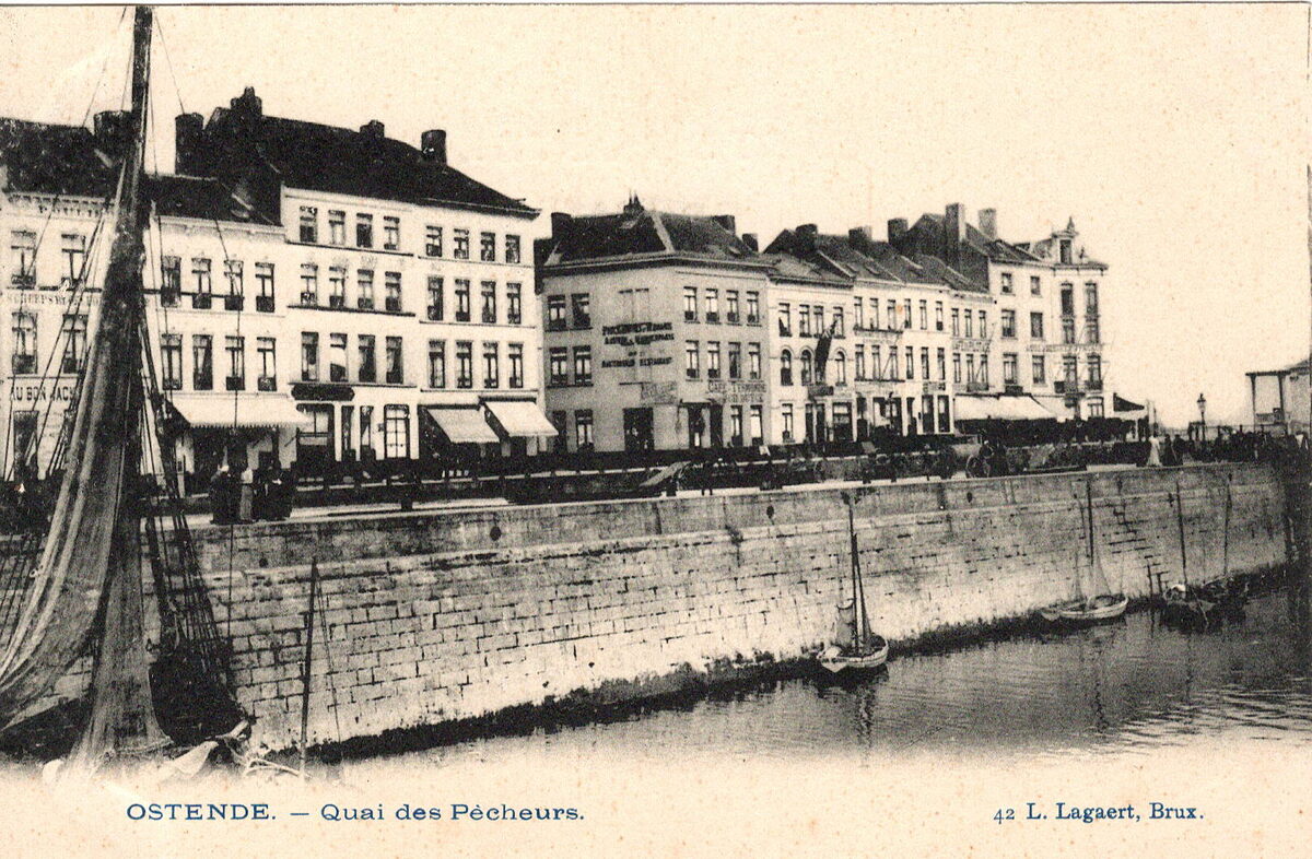 L. Lagaert, Brux. N° 42. - Ostende - Quai des Pêcheurs. - Vooraan, enkele vissersvaartuigen gemeerd in het Schuildok.