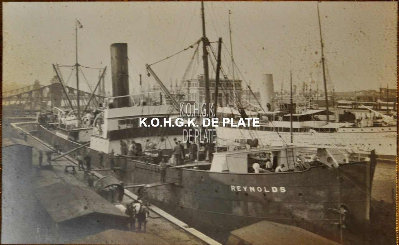Het vrachtschip "Reynolds" aangemeerd in het Vlotdok nabij Hangaar N° 1.