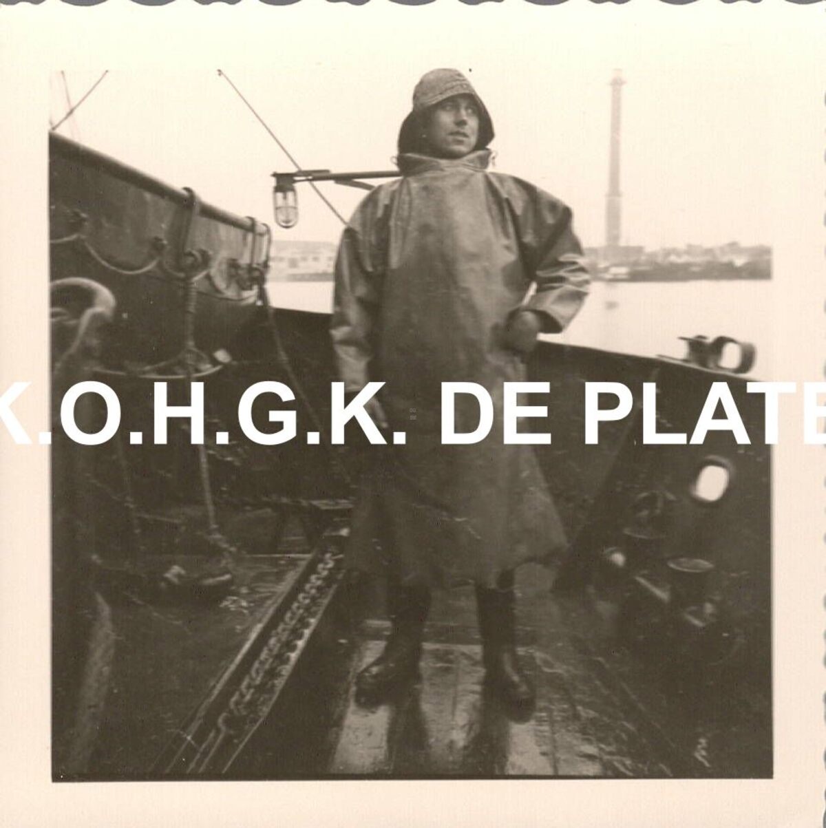 Formaat : 8 x 8 cm. - Visser met zuidwester, oliejas en rubber laarsen.