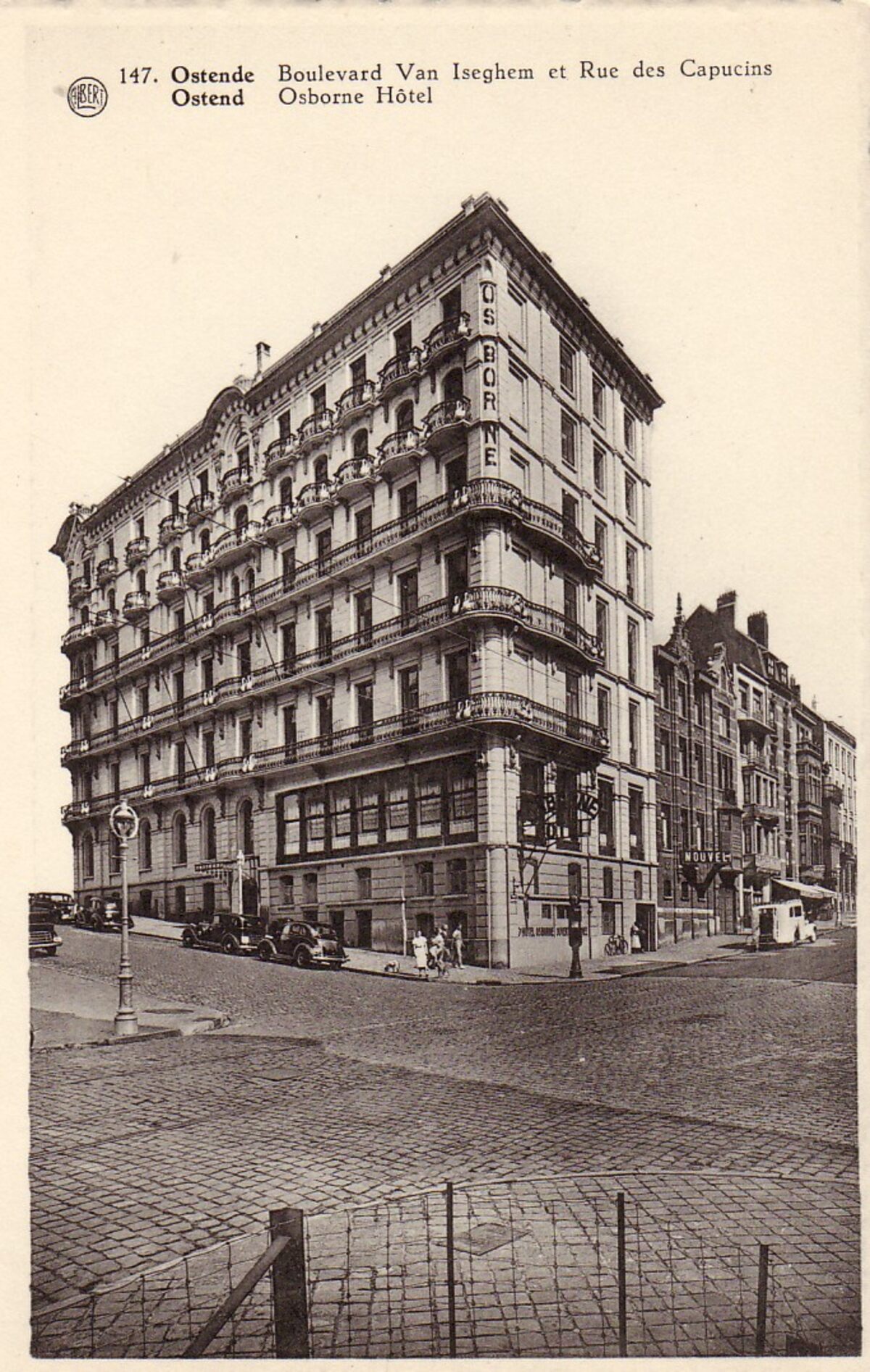 Albert N°147. Phototypie A. Dohmen, Bruxelles. - Ostende - Boulevard Van Iseghem et Rue des Capucins. Ostend - Osborne Hôtel