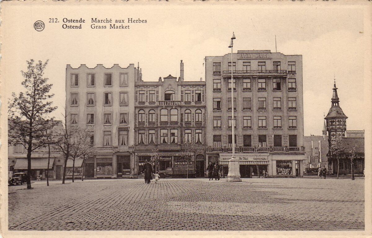 Albert, n° 212. - De Groentemakrt met rechts de toren van de Vleesmarkt langs de Kapucijnenstraat