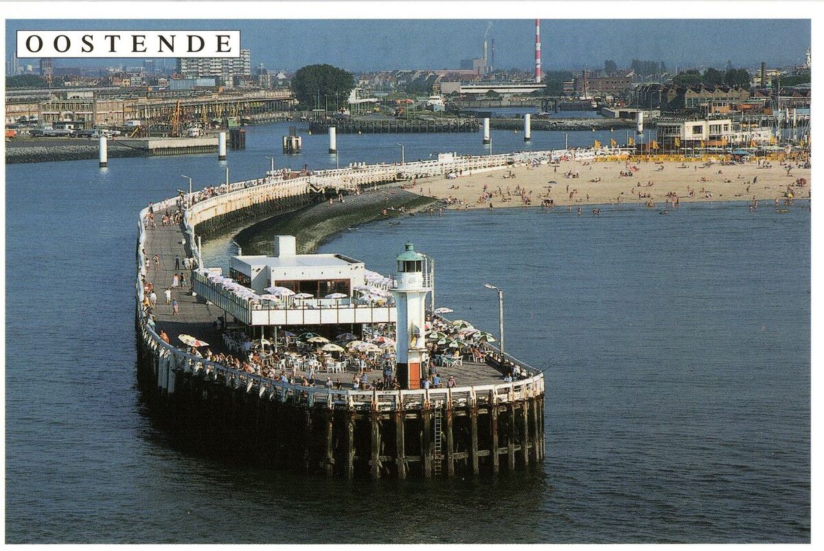 Tropic T 239. - Prentkaart van de havengeul met het Weststaketsel. Op het einde de cafetaria en het wit, ijzeren torentje met vast groen licht en mistbel. Rechts, het Klein Strand en het gebouw van de Royal North Sea Yacht Club gelegen aan de ingang van het Montgomerydok. Links, vissersvaartuigen aangemeerd in het Tijdok nabij de Vismijn.