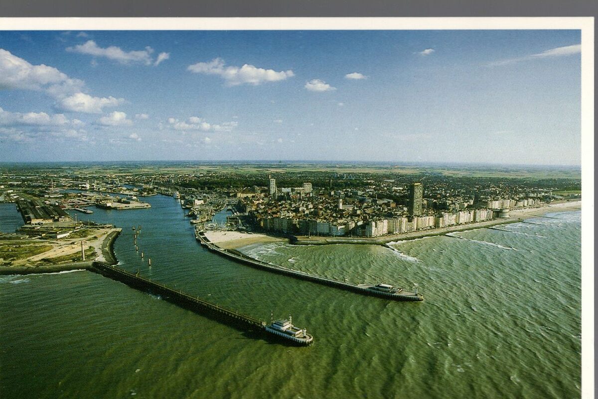 Torpoic T 287. - (Oostende voor Anker). - Panorama van de haveningang met de havengeul en beide staketsels.