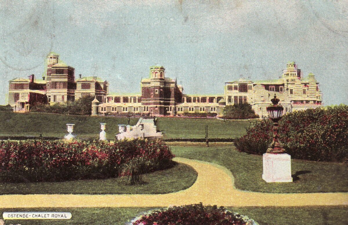 Ostende. - Châlet Royal. - Gekleurde kaart. - De zuidkant van het Koninklijk Chalet met de prachtige tuin.