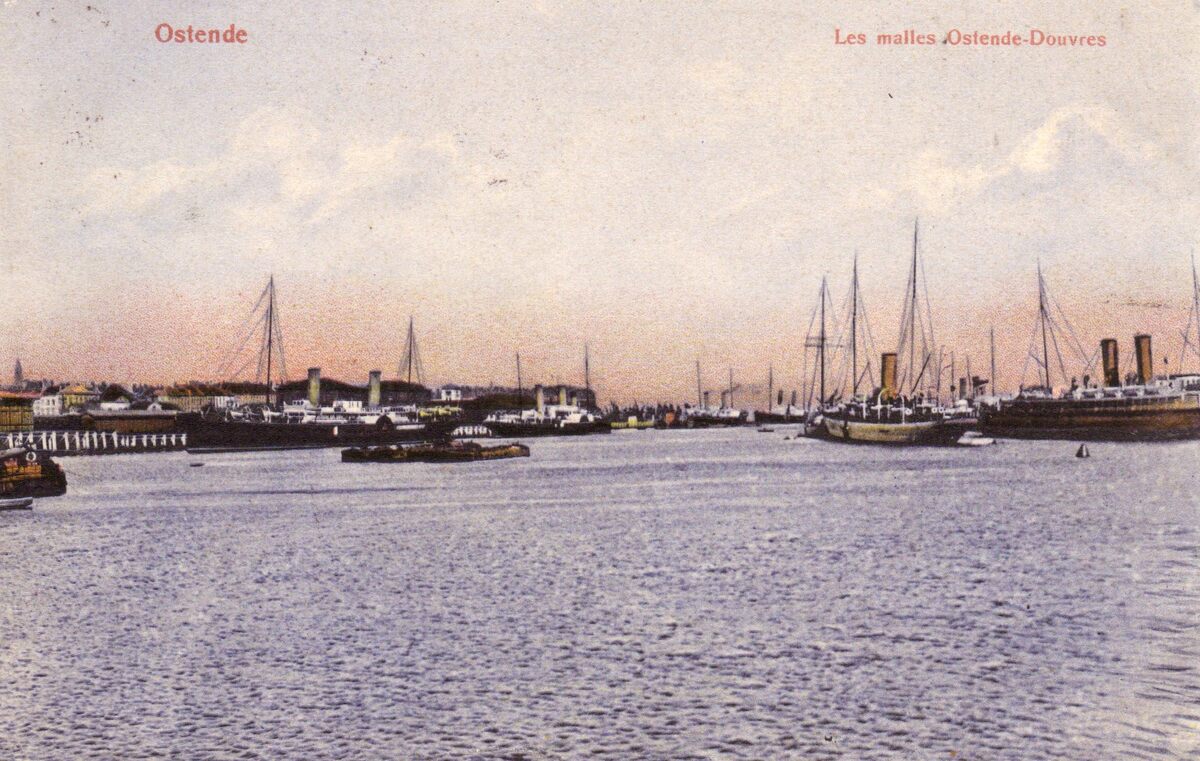 Ostende - Les Malles Ostende-Douvres - Bijgekleurde kaart.
