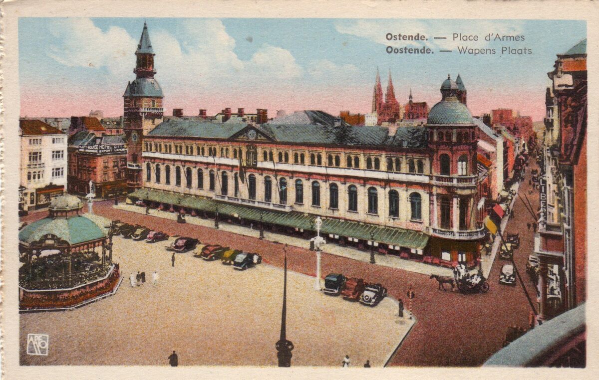 Arfo. - Ostende - Place d'Armes. Oostende - Wapens Plaats (sic). - Bijgekleurde kaart