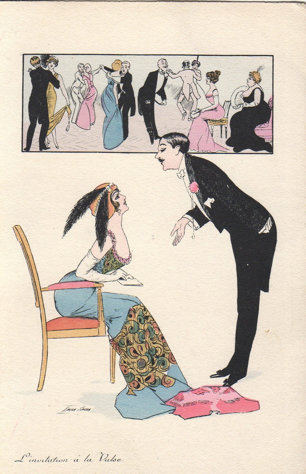 Postkaart : Fantasiekaart. L'invitation à la valse