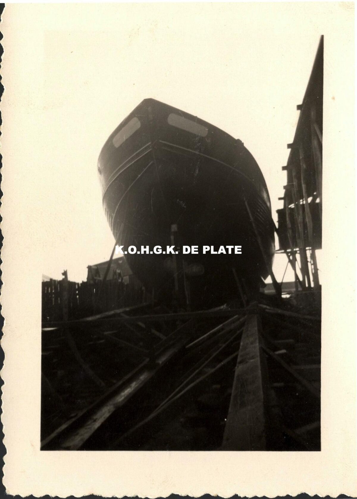 Formaat : 8 x 5,5 cm. - Bouw van een vissersvaartuig.