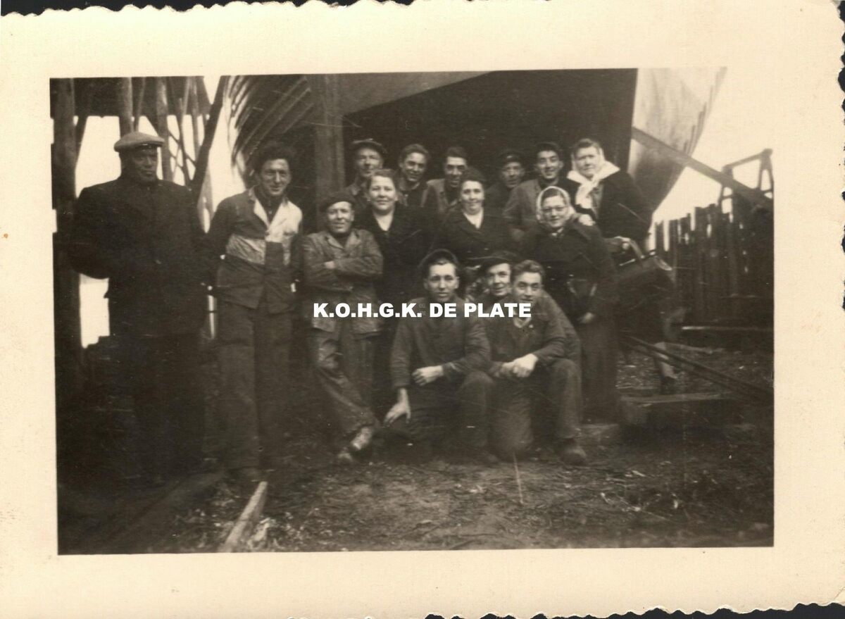 Formaat : 5,5 x 8 cm. - Personeel scheepswerf Hillebrant A. en Zonen.