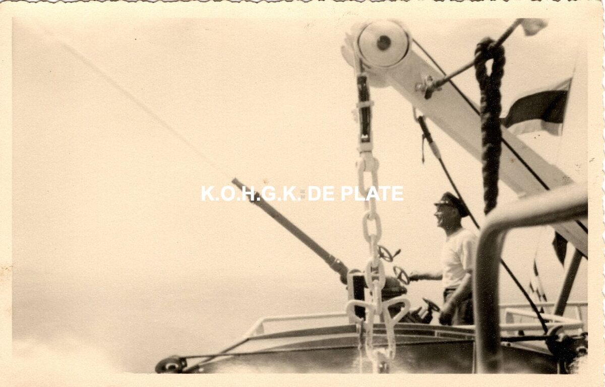 Formaat : 9 x 13.5 cm . Het waterkanon aan boord van een loodsboot