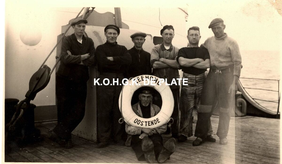 Formaat : 6,5 x 11,5 cm. Bemanning van het betonningsvaartuig "Zeehond"