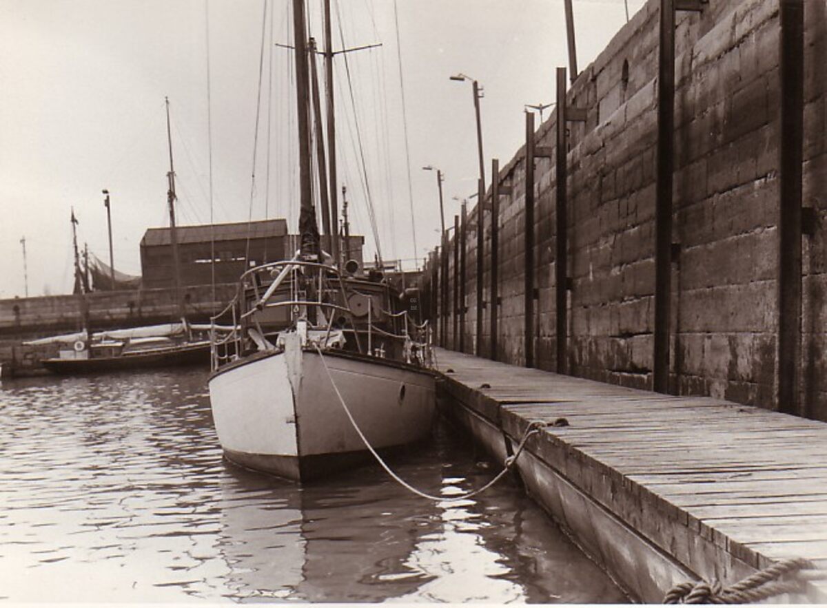 Foto :18 x 13 cm. - Kaaimuur van het Montgomerydok. Het Garnaalkot op de plaats waar nu de Vistrap is.