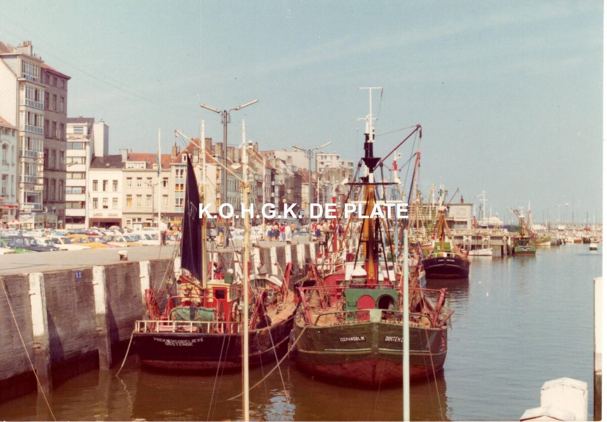 Formaat : 9 x 12,5 cm. - Links de Visserskaai en in de achtergrond de Vistrap