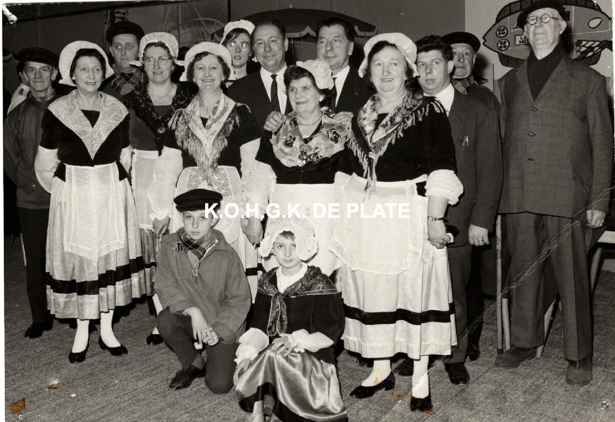 Formaat : 16.5 x 11.5." Het Loze Vissertje", met in het midden de nieuwe voorzitter John Hermans en koorleider Florimond Corsellis