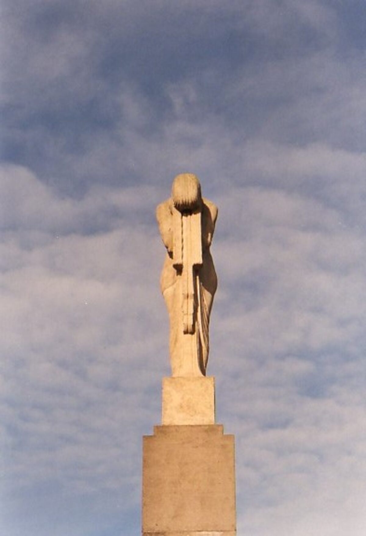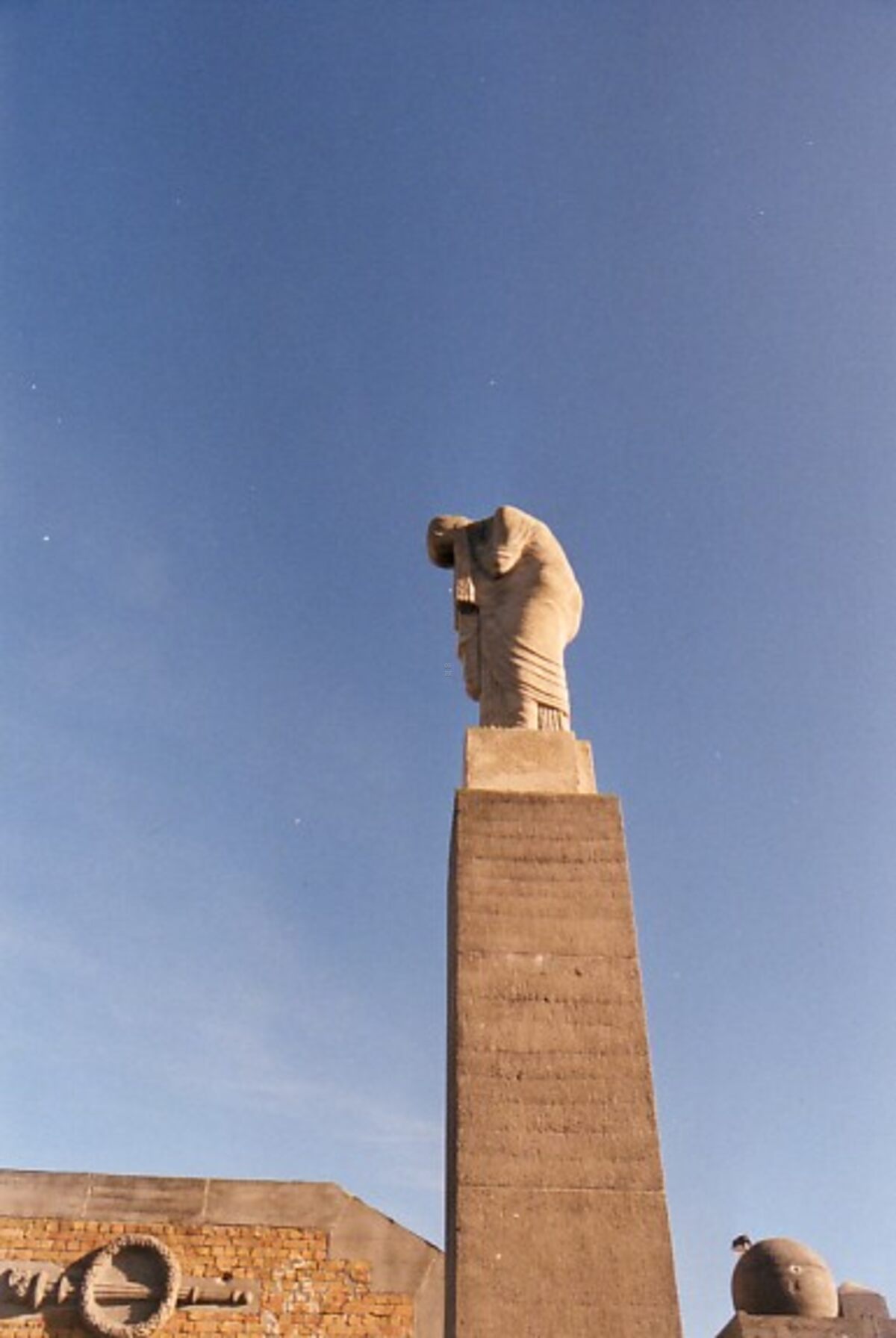 6 foto's : 10 x 15 cm. - De twee beeldhouwwerken in art-deco van Geo Verbanck, rechts en links van de smeedijzeren poort aan de ingang van het kerkhof.