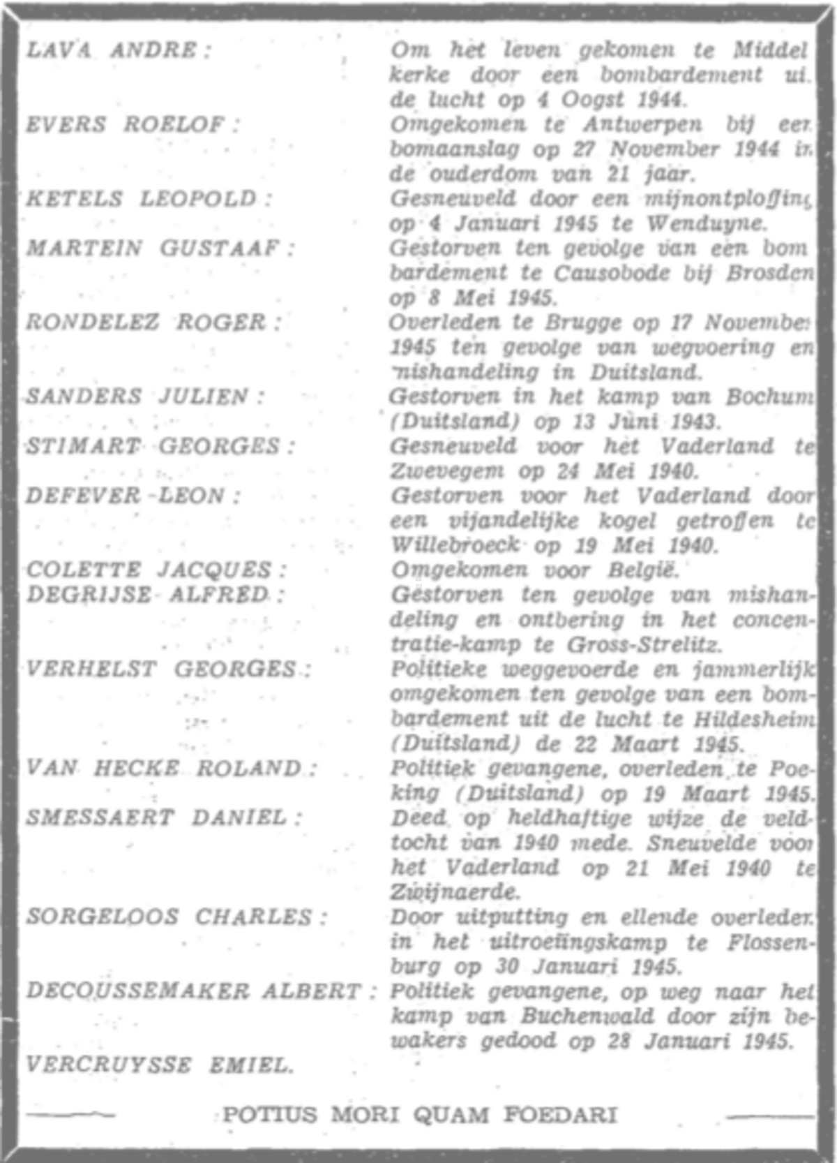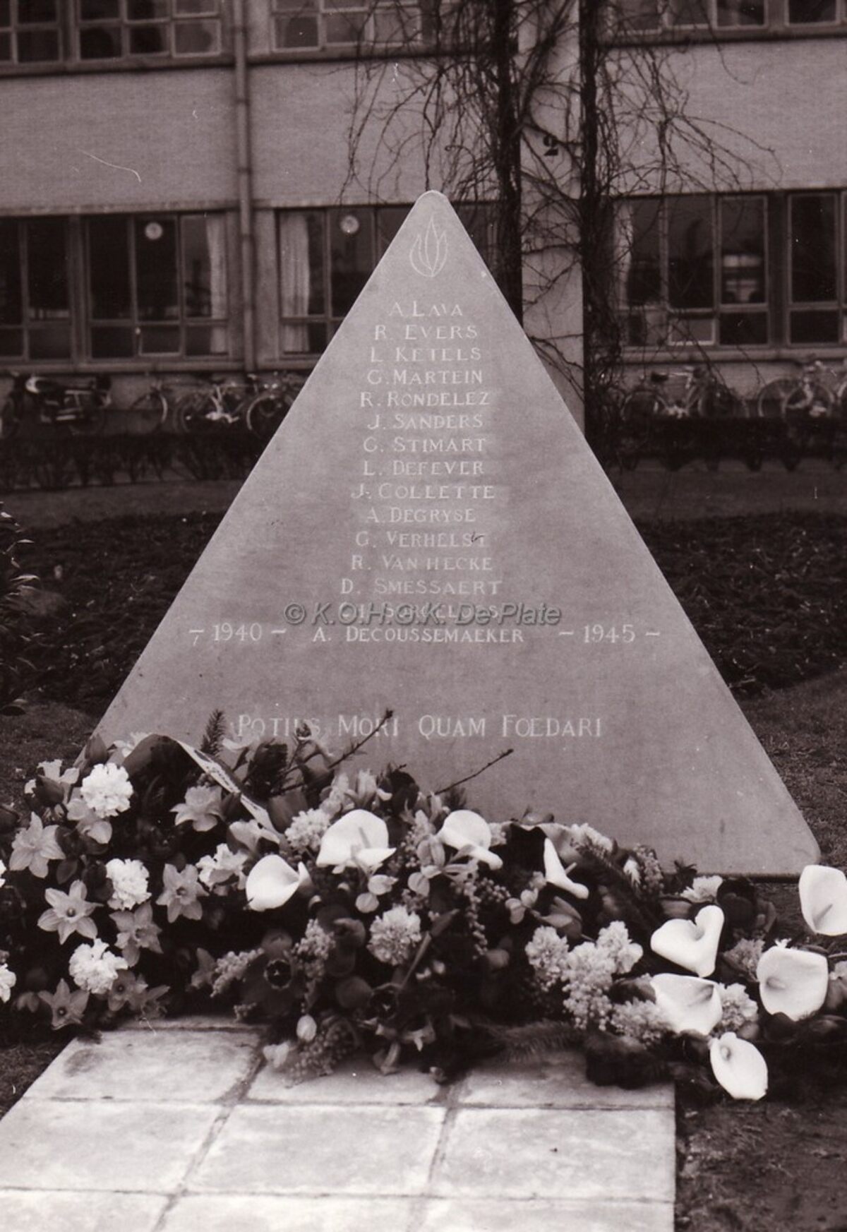 Gedenksteen voor de gesneuvelde en vermoorde leerlingen en oud-leerlingen van de Stedelijke Vakschool tijdens de Tweede Wereldoorlog langs de Brandariskaai.