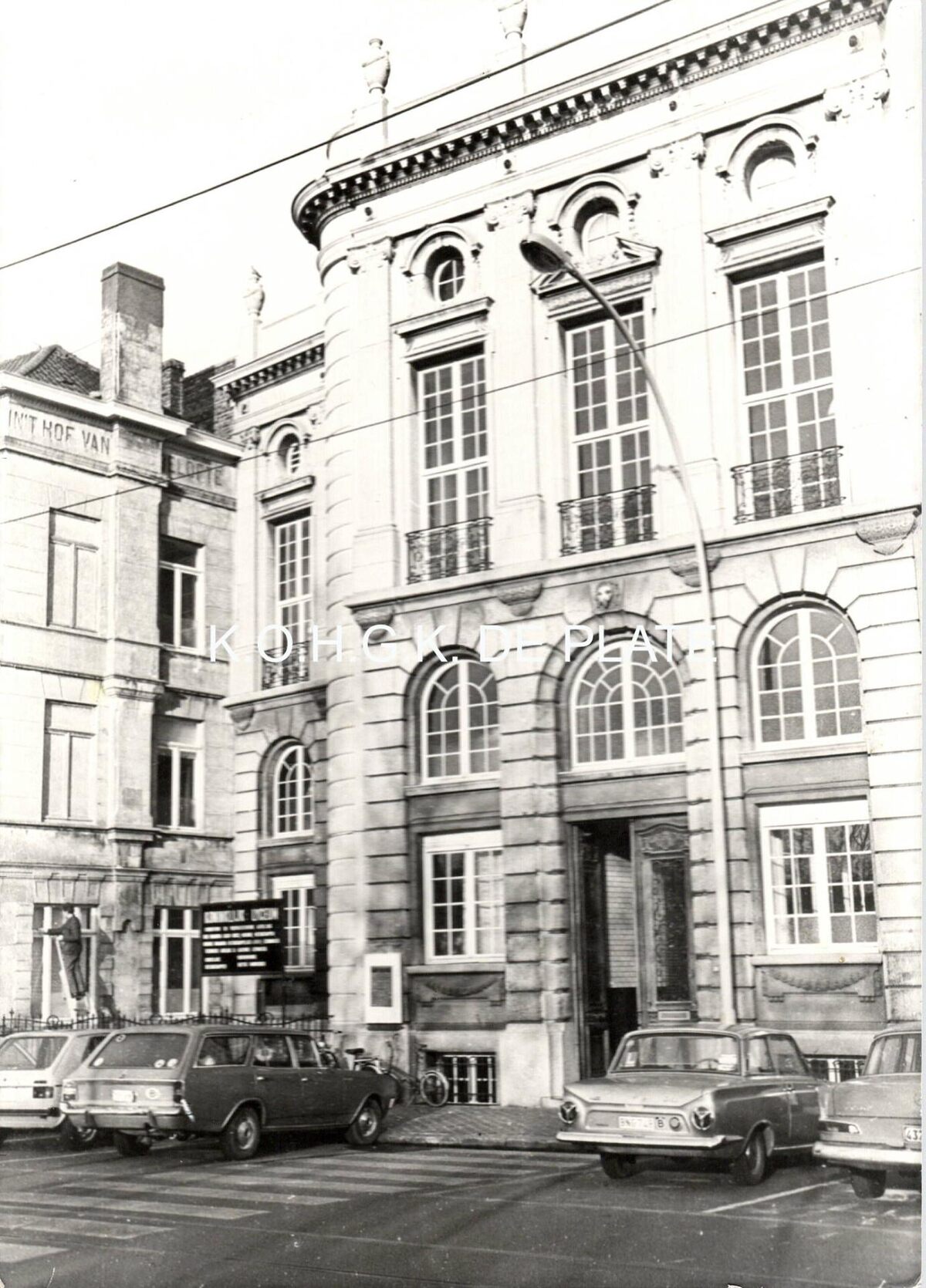 Formaat : 18 x 13 cm. - In 1910 besluit de stad op de plaats van de voormalige gevangenis een stedelijke, betalende meisjesschool op te richten naar ontwerp van stadsarchitect A. Raoux. De aanbesteding vindt plaats in 1914. De uitvoering wordt door de Eerste Wereldoorlog verdaagd tot 1921-1922 en gebeurt door aannemer Smis-Damman. Neoclassicistisch getint breedhuis.