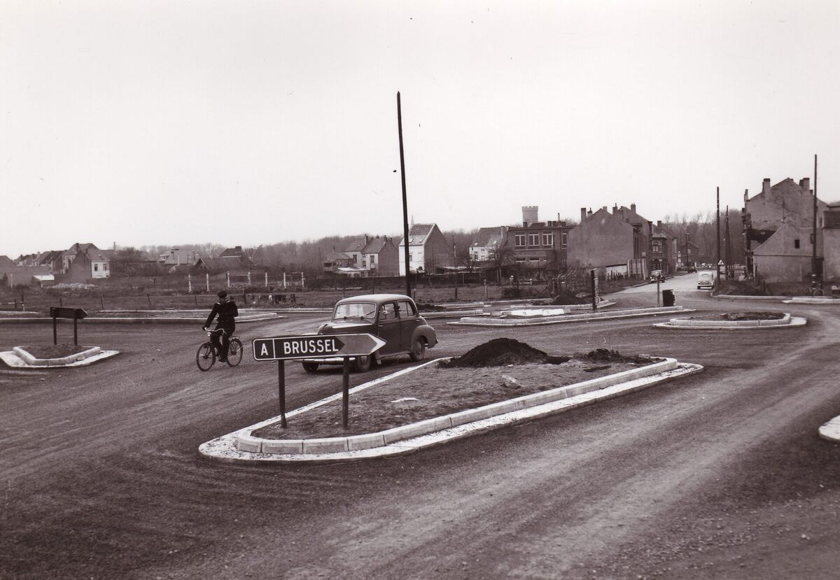 Formaat : 13 x 18 cm. - Het kruispunt Gistelsesteenweg en Elisabethlaan nabij bij de Kennedyrotonde kort na de opening van de autostrade.