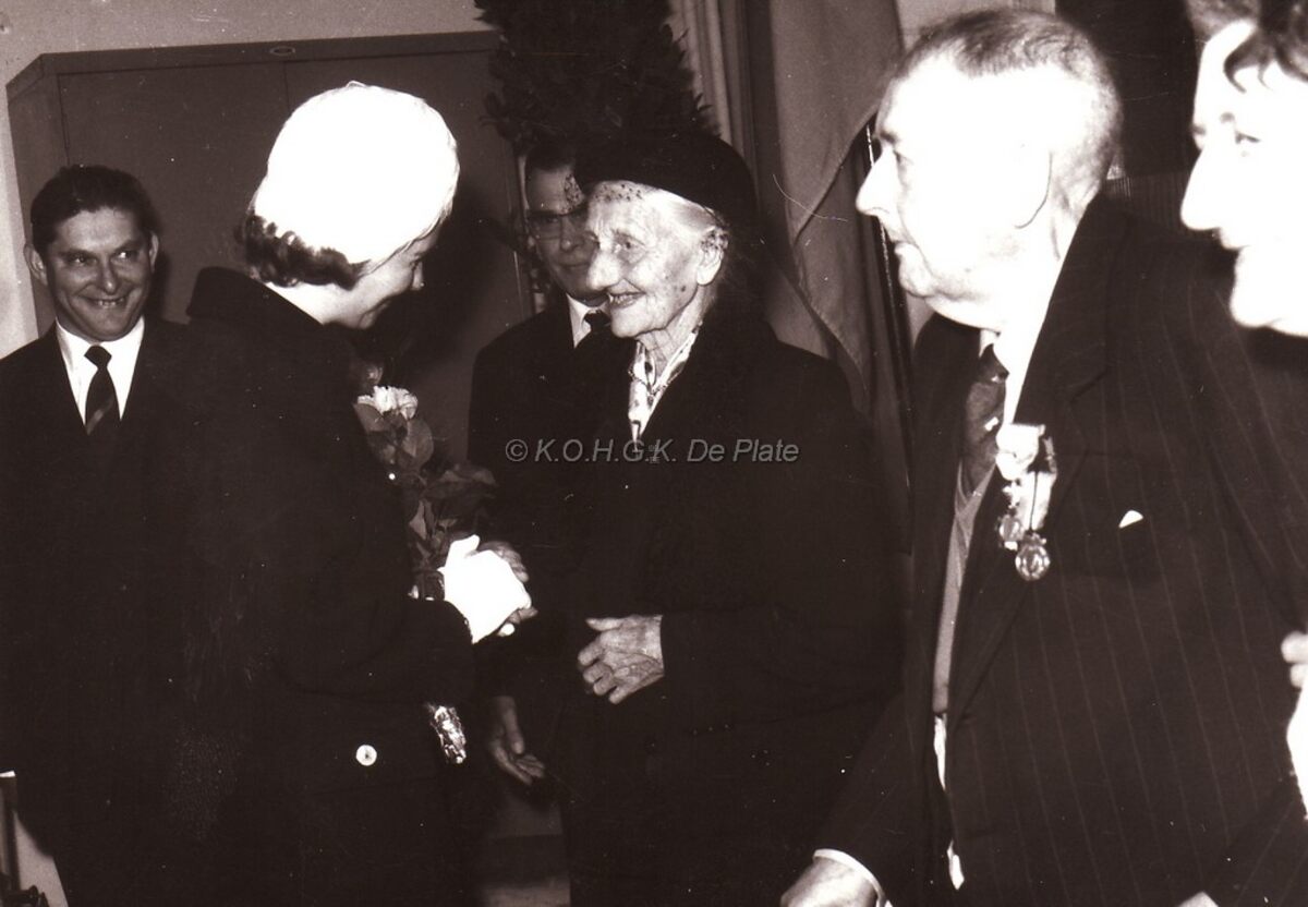 Koningin Fabiola in gesprek met een honderdjarige