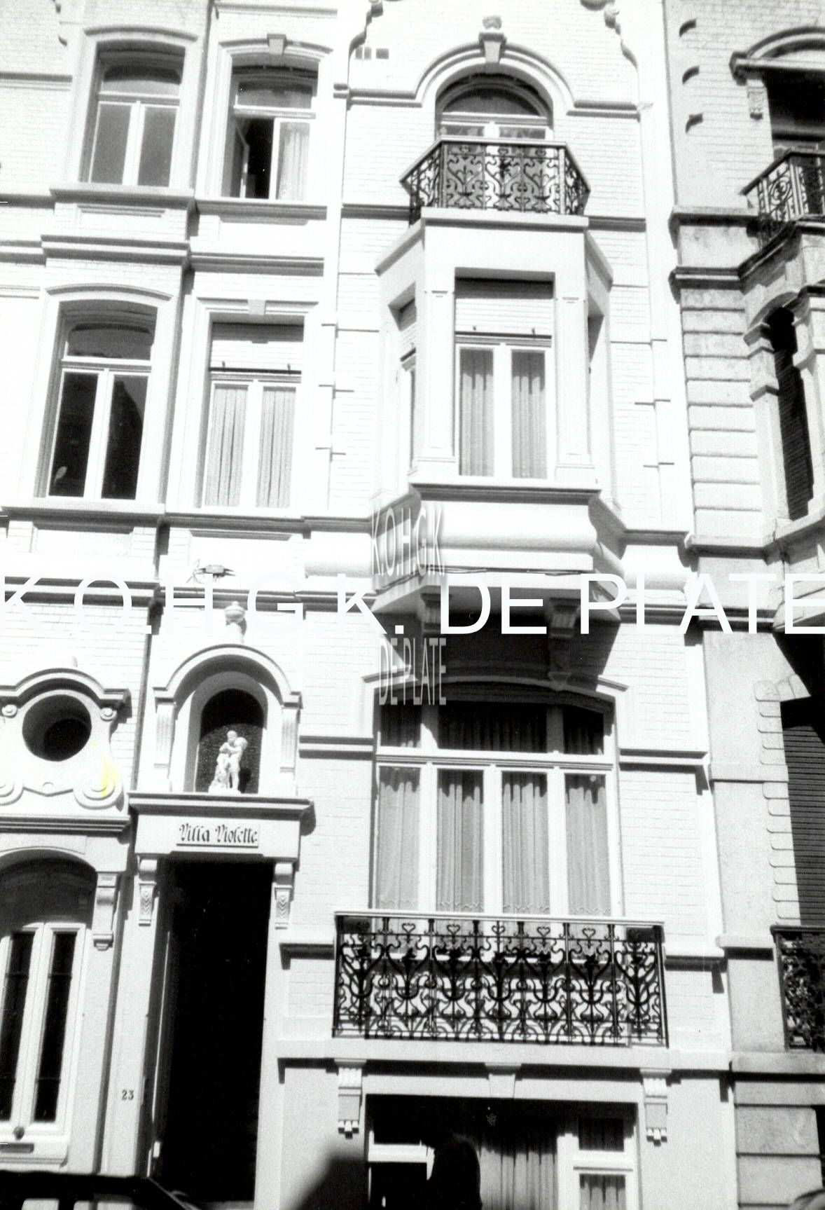 Formaat : 15 x 10 cm. - Herenhuis uit begin 20e eeuw. Boven de voordeur in een nis staat een putti.