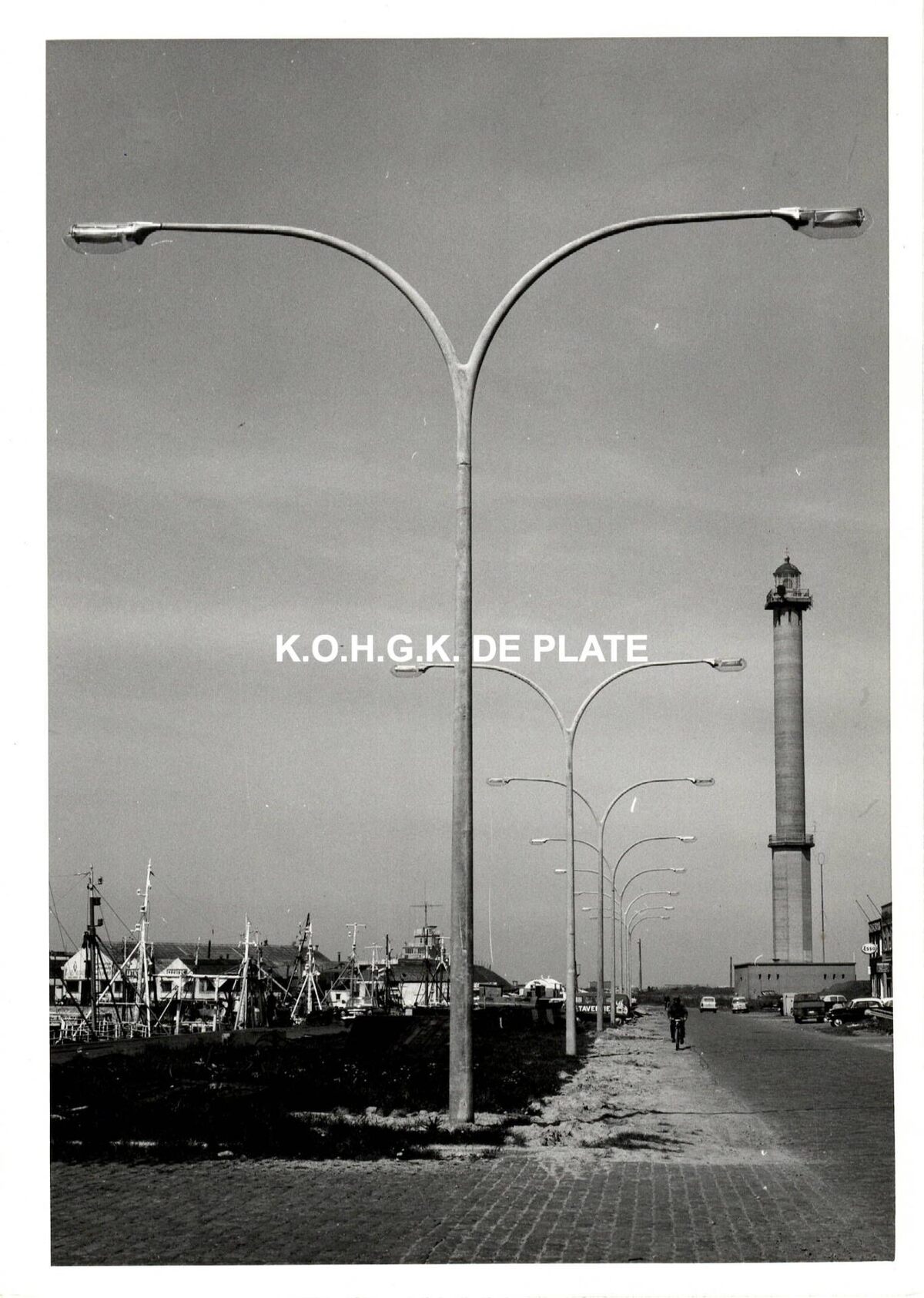 Formaat : 18 x 13 cm. - De Hendrik Baelskaai, met op het einde de vierde vuurtoren "Lange Nelle". Links, het Visserijdok en de gebouwen van de scheepswerf Seghers