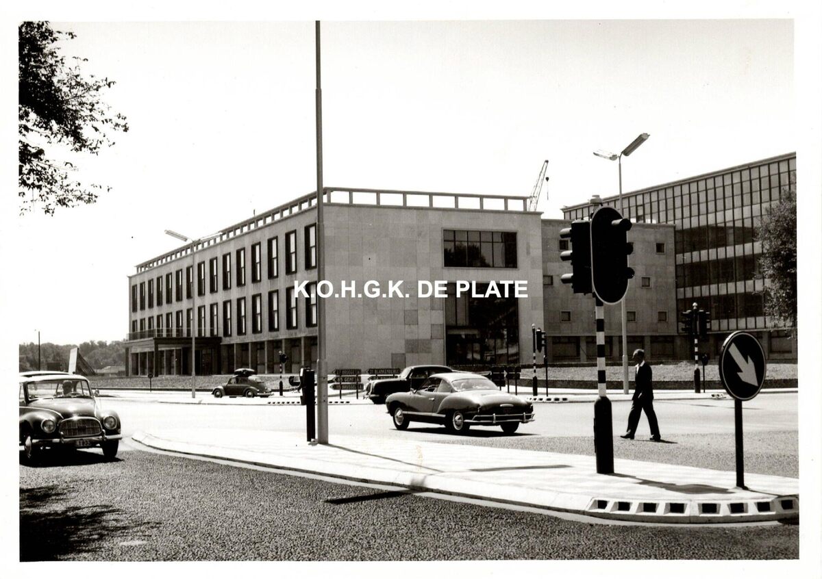 Formaat : 13 18 cm. - De vleugel van het stadhuis aan de Leopold II-laan kort na de ingebruikname van het gebouw. We zien het kruispunt met de Vindictivelaan.