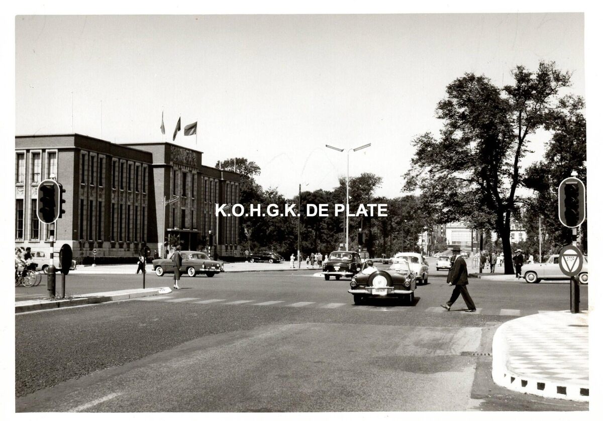 Formaat : 13 x 18 cm. - Het kruispunt Vindictivelaan (links), de Leopold II-laan en Vindictivelaan (rechts). Links, het Gerechtshof en op de achtergrond het Leopoldpark.