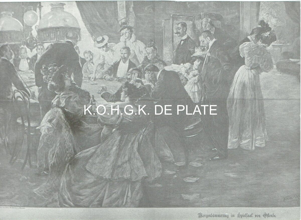 Afdruk. - Formaat : 13 x 18 cm. - Morgensämmerung in Spielsaal von Ostende