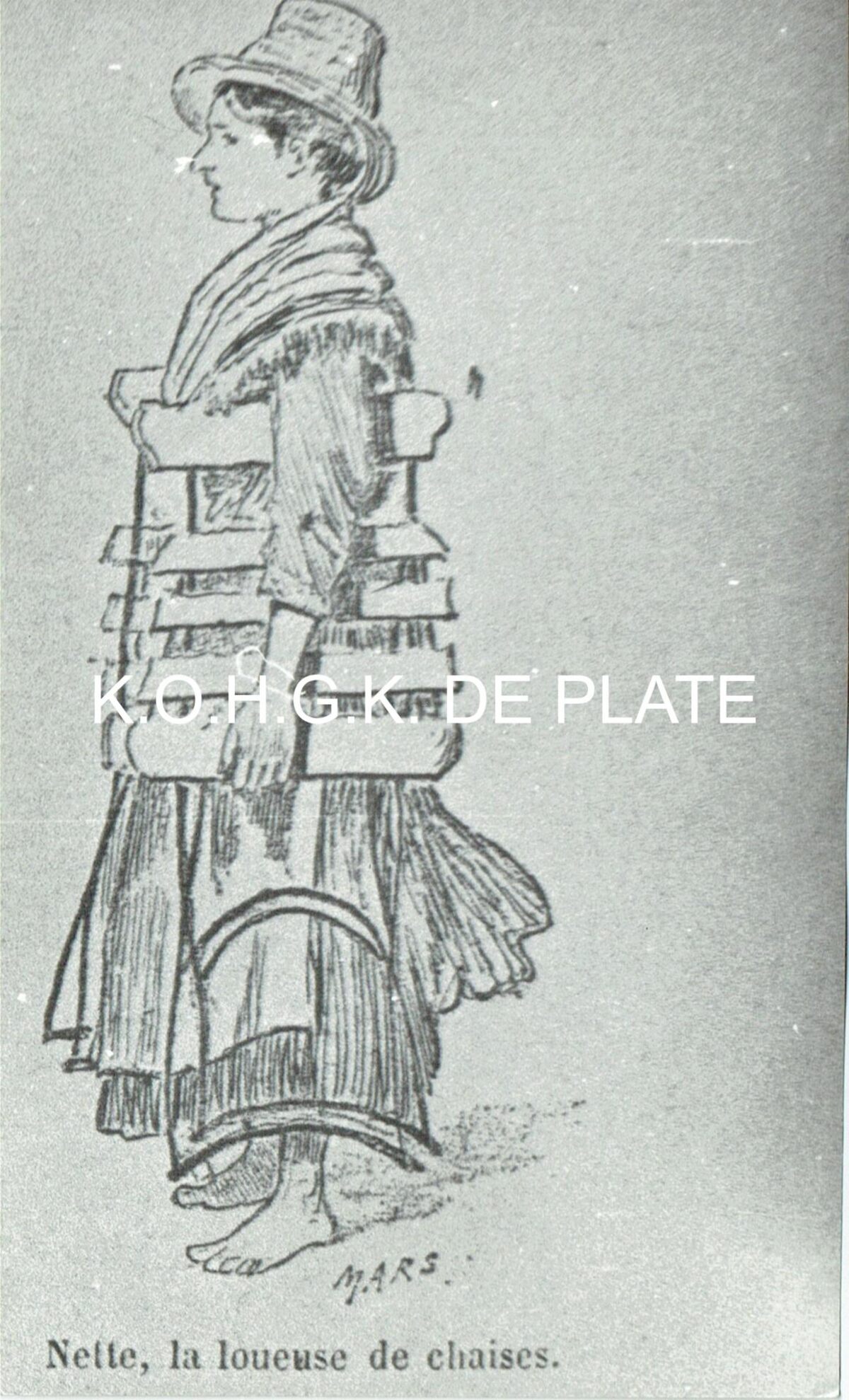Afdruk van tekening. - Formaat : 17 x 10,5 cm. -