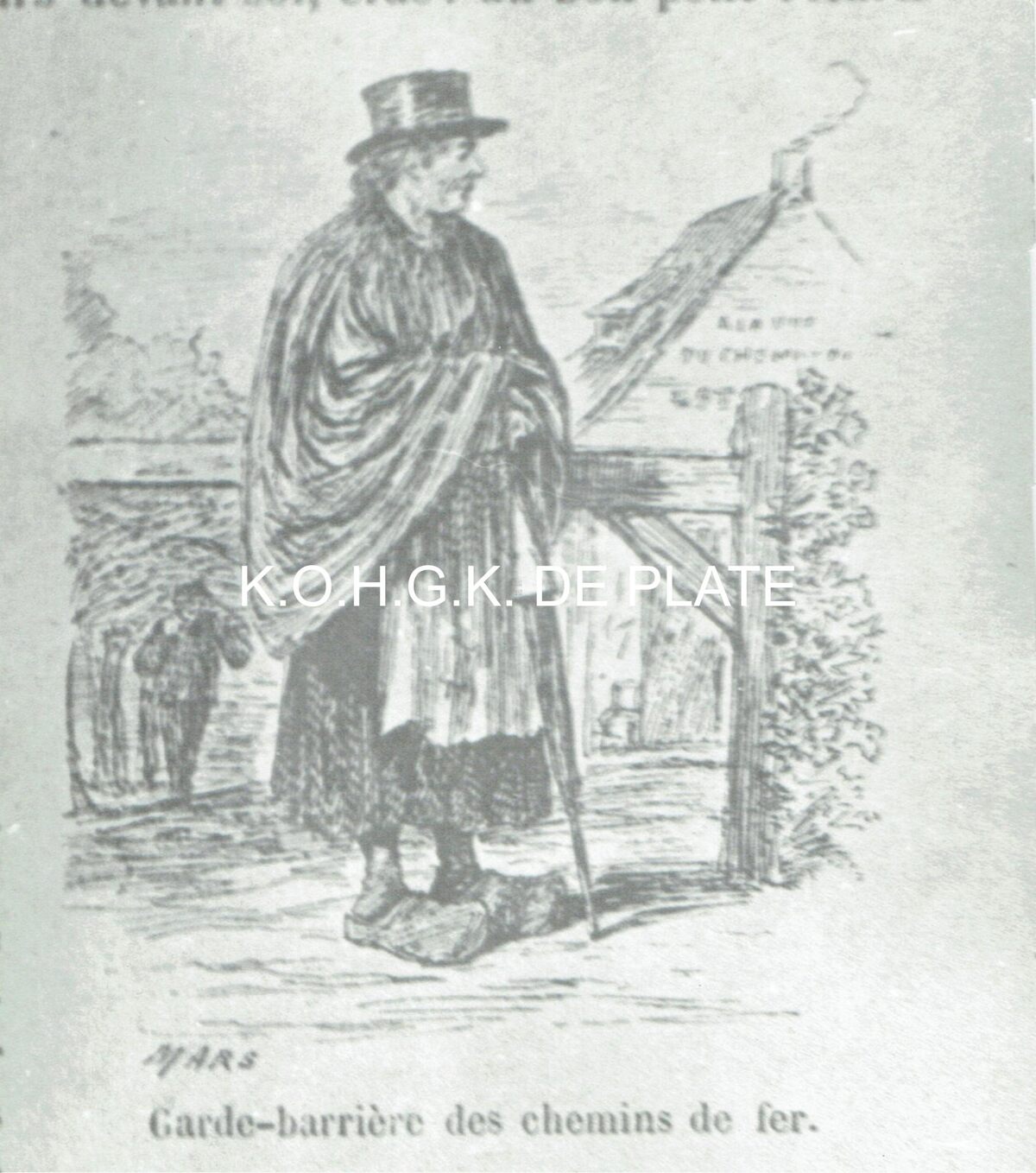 Afdruk van tekening. - Formaat : 20 x 14 cm. - "Garde-barrière des chemin de fer"