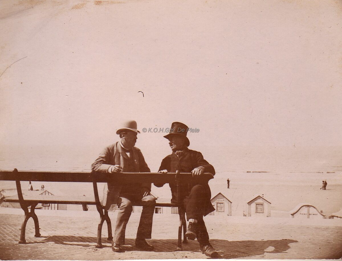 Foto : 12 x 9 cm. - Twee heren op een bank op de Zeedijk