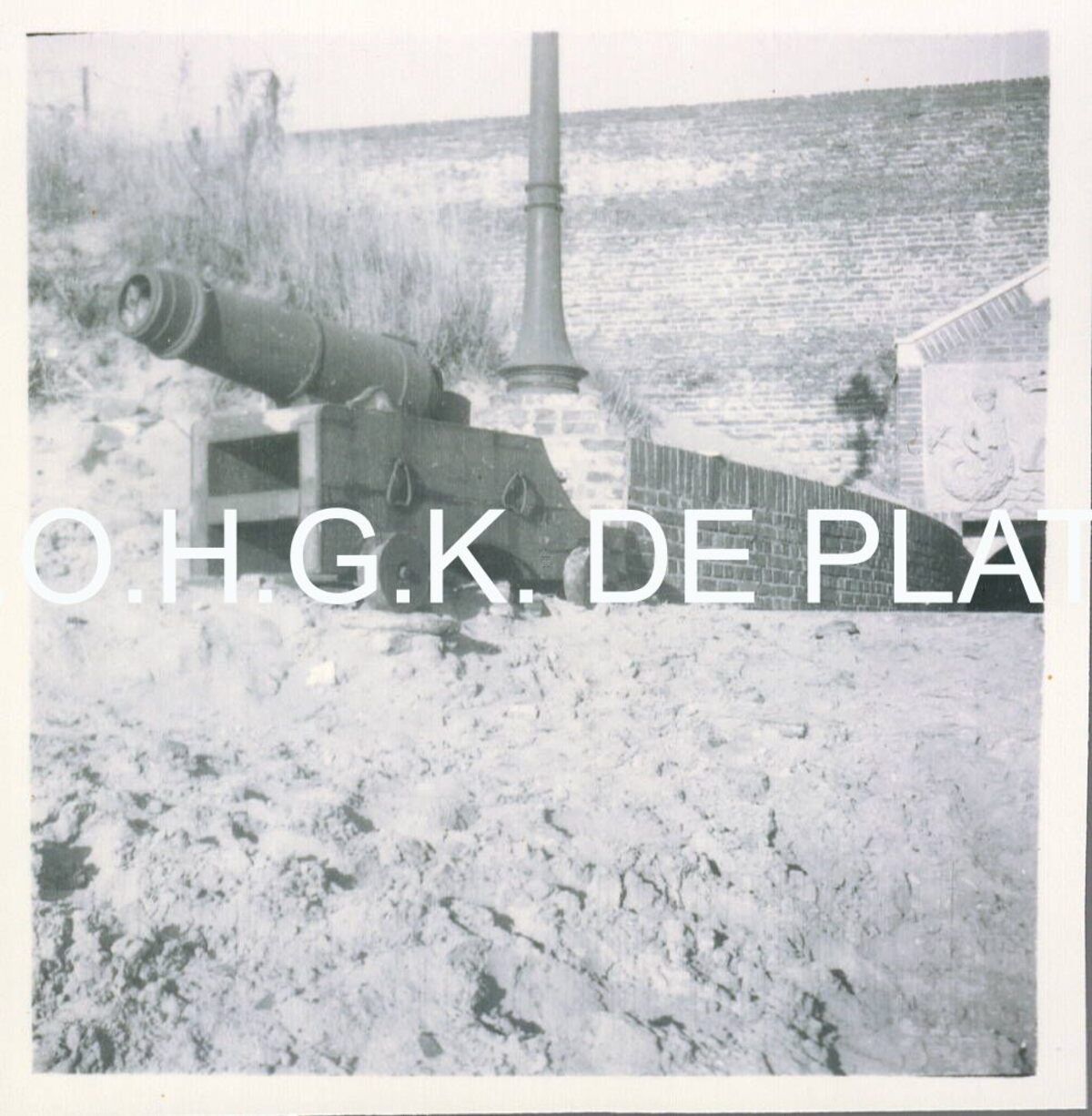 Afdruk. - Formaat : 6 x 6 cm. - De ingang met kanon
